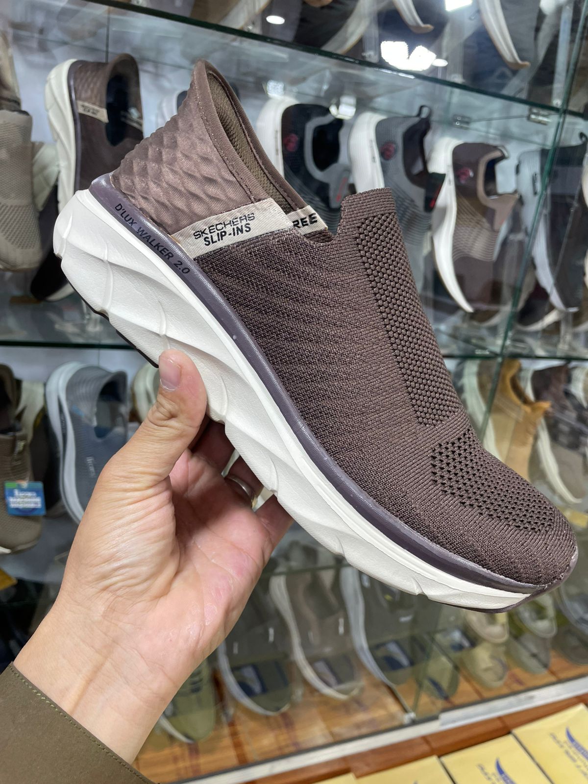 Comfortable Skechers Slip-ins D’Lux Walker 2.0 with a soft knit upper, cushioned heel, and hands-free slip-on design. Perfect for daily walking and all-day comfort.